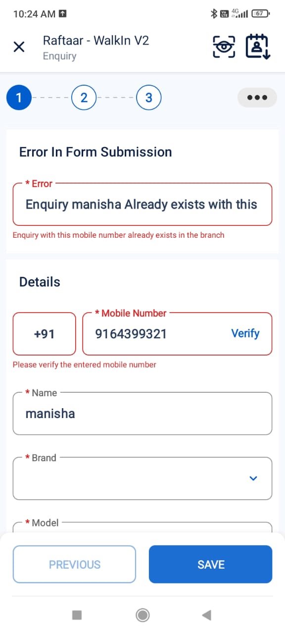 • If an enquiry already exists with this number within same branch as the user’s branch who is trying to add the enquiry, check for the current owner and inform to follow the below steps to get the access of that enquiry.