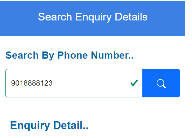 • Click the “Enquiries” button, Located in the Bottom Right end of the Screen and search with mobile number.