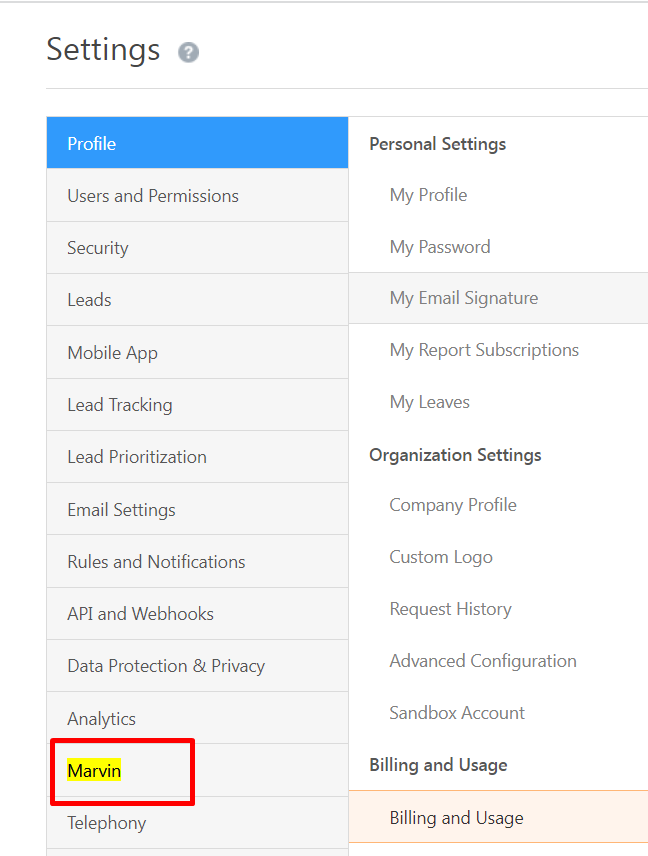 1.  If Marvin Feature is enabled for the tenant. You can check this by going to Settings Page and check if Marvin tab is present in the settings.