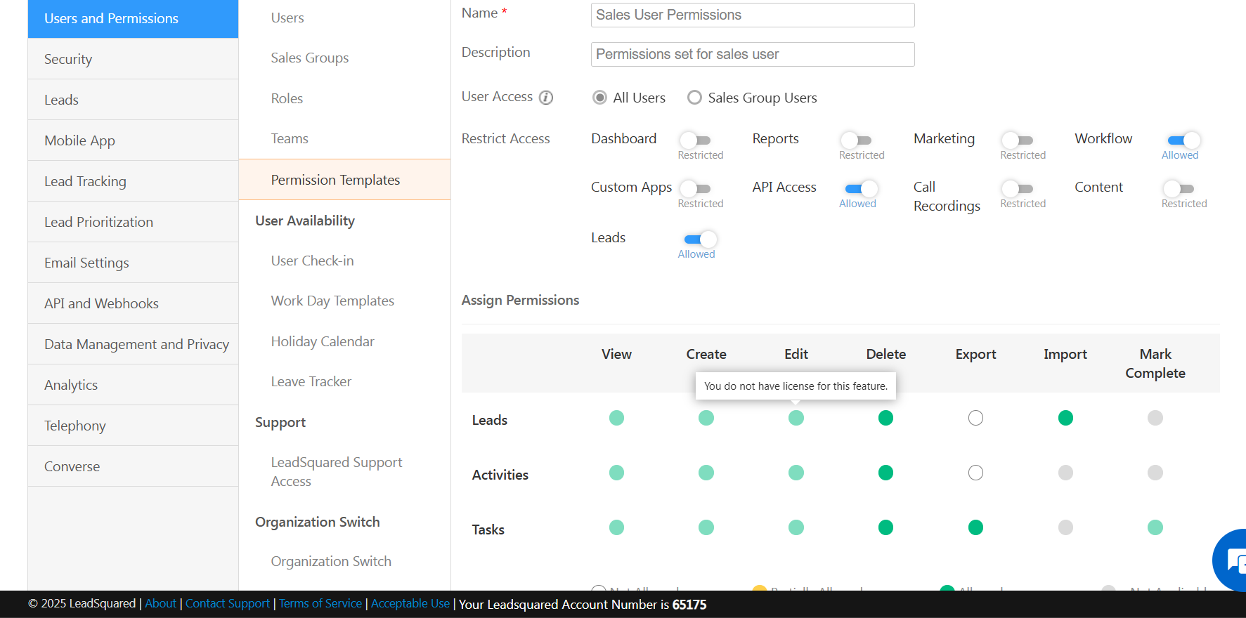 The ability to edit permission templates is controlled by a billing configuration.