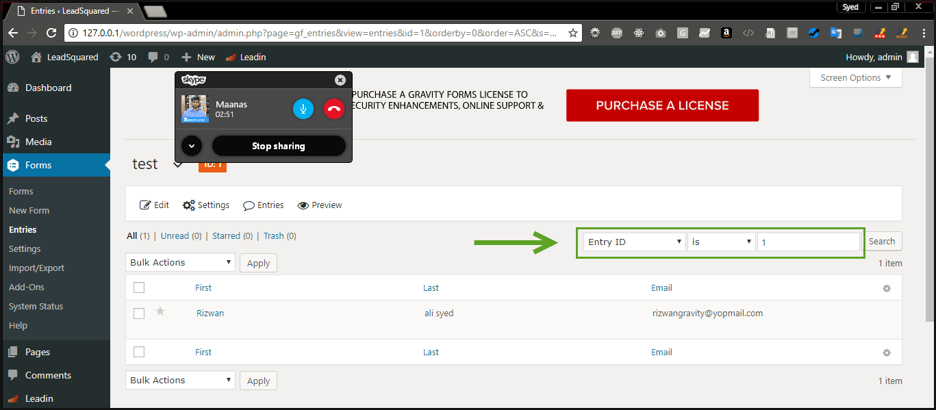 Please go to Gravity form and go to Entries. Set the “Entry ID” -> Is -> enter that particular ID.