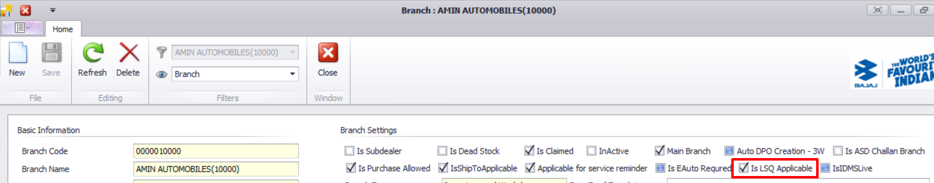 - The branch associated with the user must be marked as “LSQ Applicable” in CDMS.