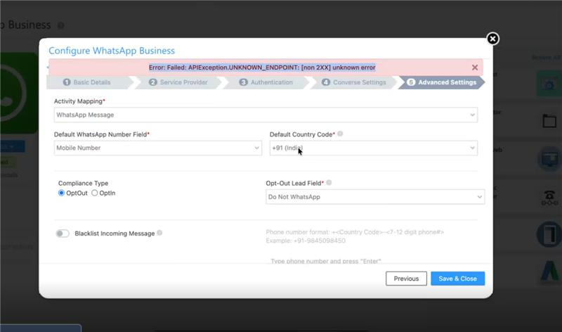Issue – in configure WhatsApp Buiness