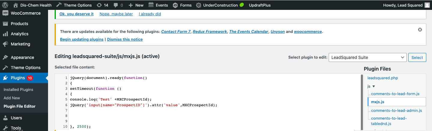 A custom JS file needs to be installed inside the current Leadsquared Plugin in WordPress. This file passes the captured ProspectID so that the same is present in Lead ID, thereby allowing the source to be captured correctly.