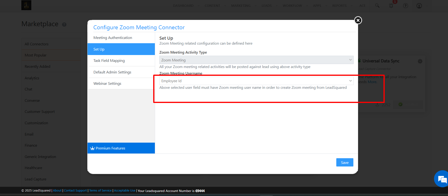 The following error is coming because when configuring the connector, the zoom meeting username field might not be Custom 1, custom2, custom 3 till custom 10.