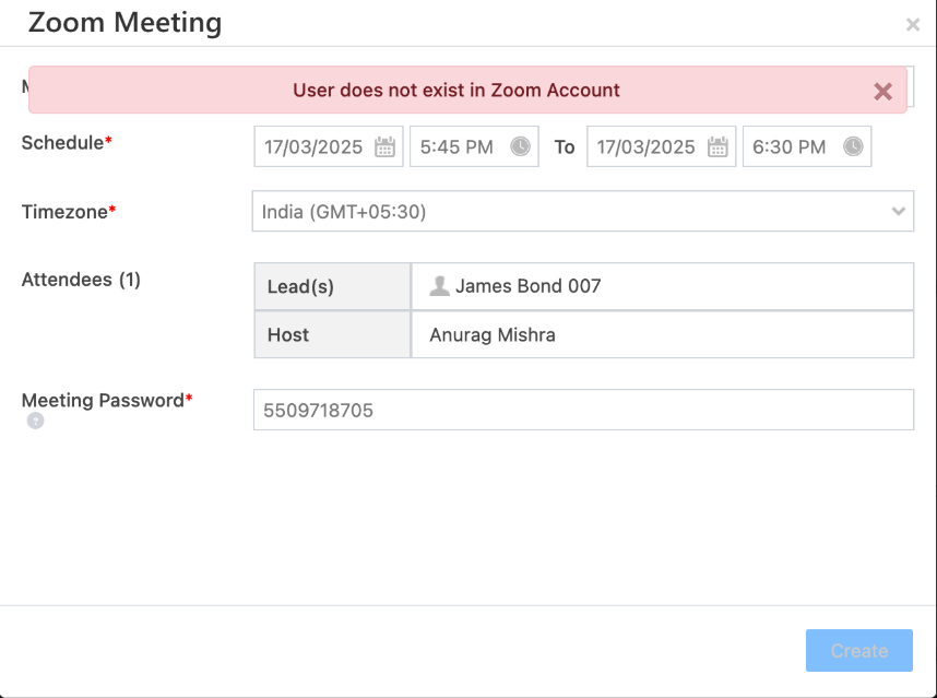 Post changing the same, you should get the following error while scheduling the zoom meeting-