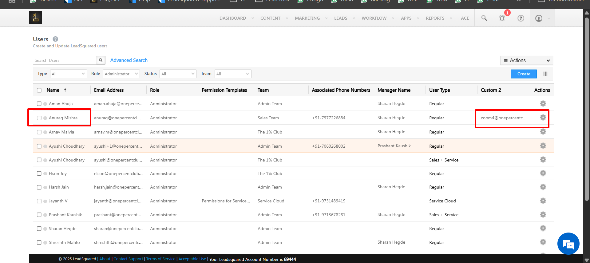 The user should have the email ID configured in the connector configured in the custom 2 user field-